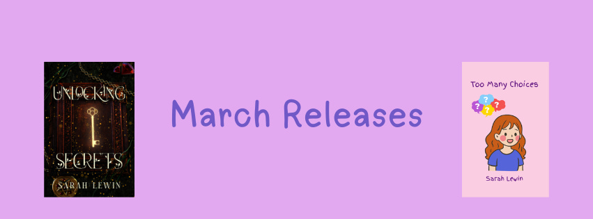 In the present, I’m writing children’s stories and witchy mysteries. Keep an eye out for my children’s book – Too Many Choices, which will be published in March. There’s a new mystery book – Unlocking Secrets which should be live by the end of March.